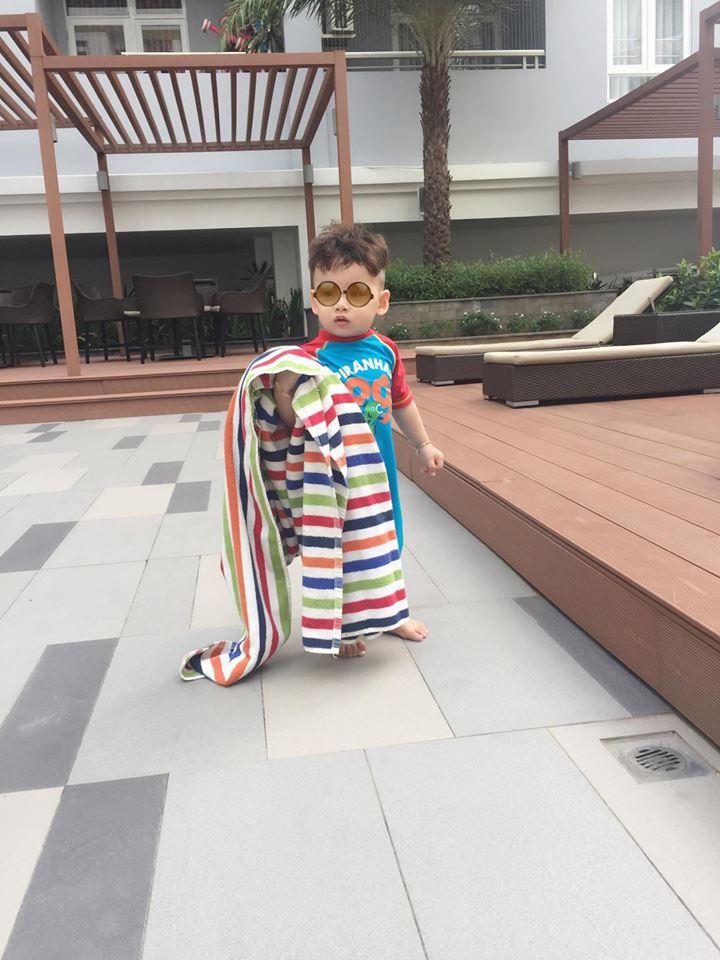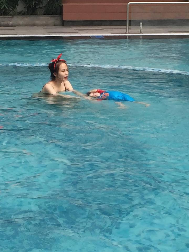 Diễm Hương thích thú khoe niềm vui bên con: Làm đẹp còn thích hơn , đang ở nhà phá lung tung, tự nhiên bắt xuống hồ bơi. Lại phải bơi úp bơi ngửa cho cô ấy duyệt mới được lên. Hả, ta nói quá trình chuẩn "soái ca" đâu phải dễ.