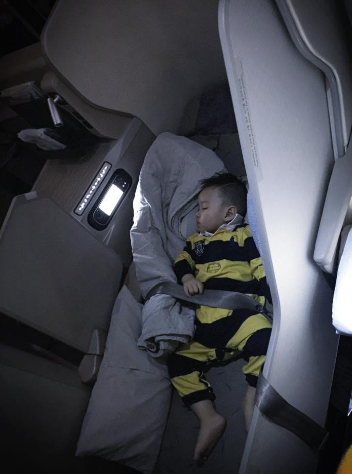 cũng chịu ngủ sau khi quậy banh chành từ sân bay tới máy bay. Làm mình mệt vậy