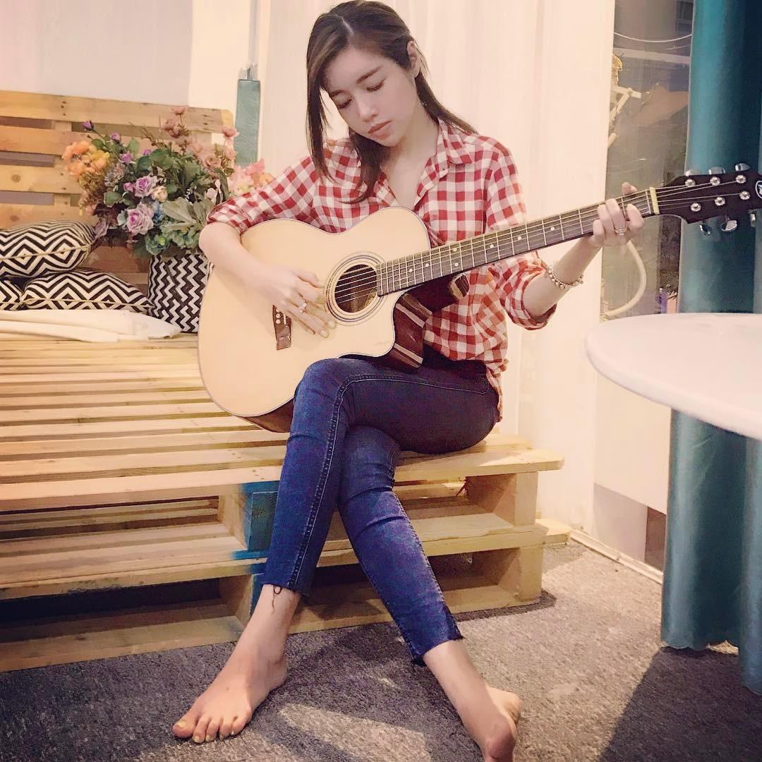 Elly Trần thảnh thơi ngồi thư giãn đánh đàn.