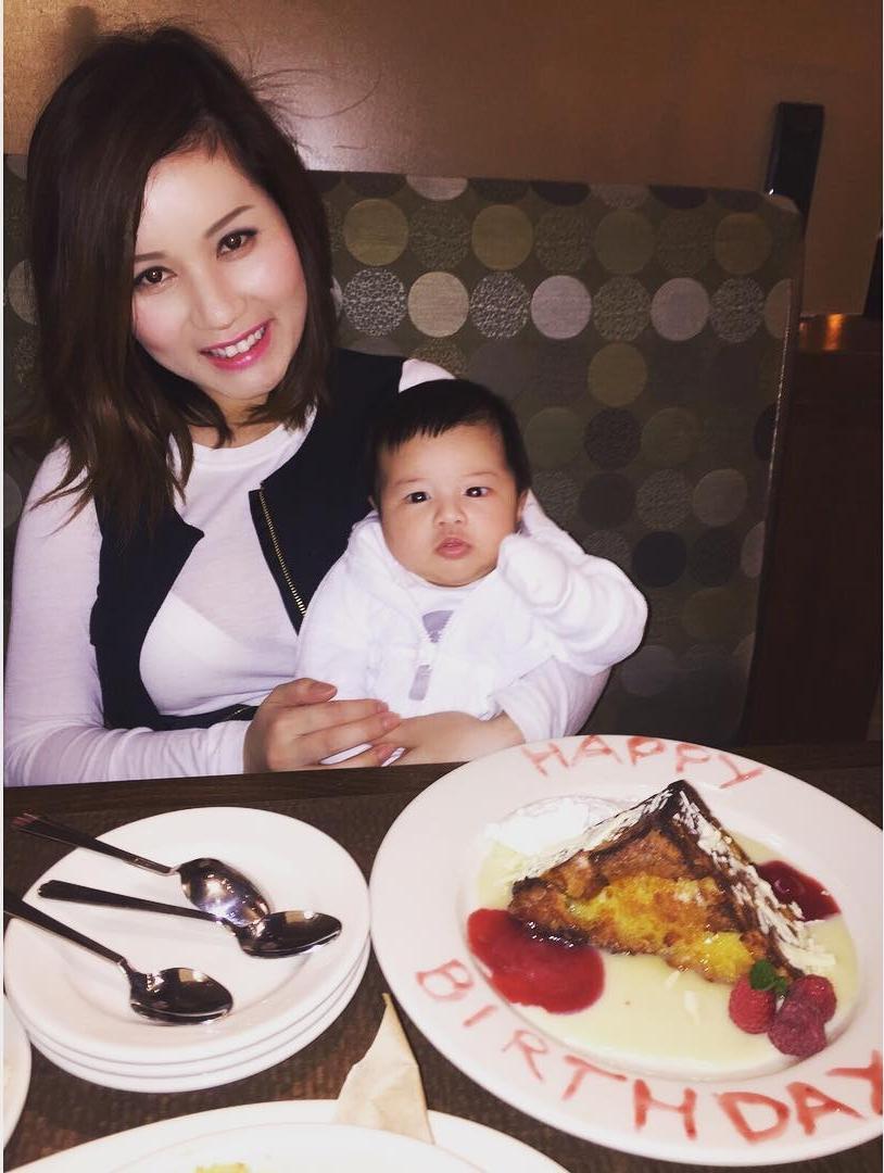 Bà xã Đan Trường đưa con đi tiệc tùng.