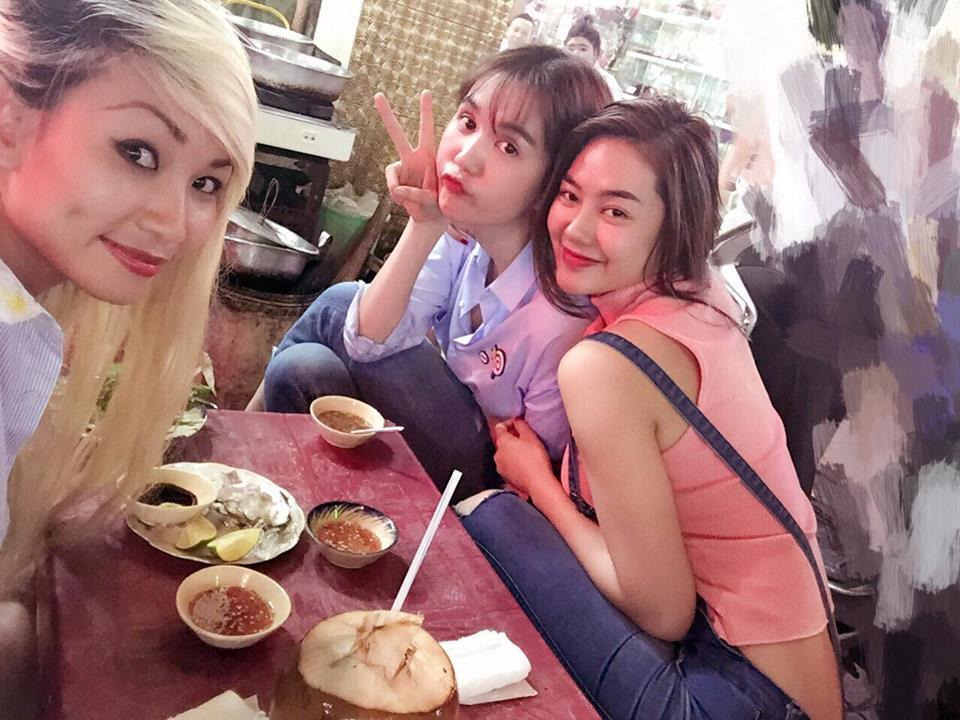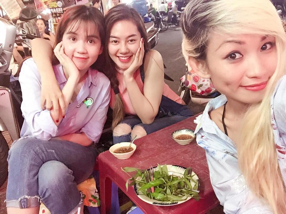 Ngọc Trinh lê la ăn uống vỉa hè cùng Linh Chi