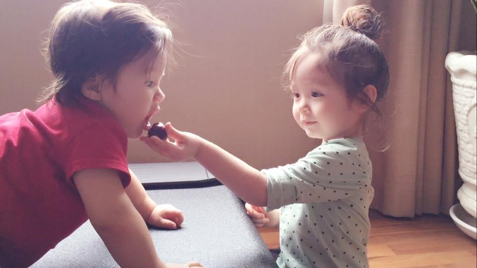 Niềm vui nho nhỏ thứ 2: Được ai cho món ăn gì thì Cadie cũng chạy lại đút em rồi nói
