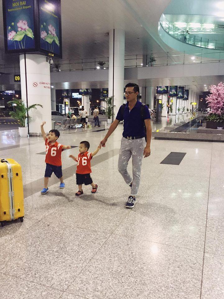 Đan Lê đưa hai con ra sân bay đón chồng về sau chuyến công tác dài.