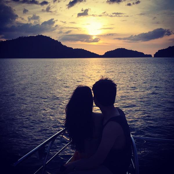 Phan Anh và vợ tình tứ bên biển. Nam MC The Voice chia sẻ: "Cho nhau yên vui ấm áp cuộc đời".