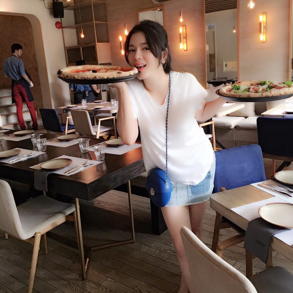 Lý Nhã Kỳ phấn khích: Cô nhân viên bán Pizza, khách chưa đến nên tranh thủ chụp