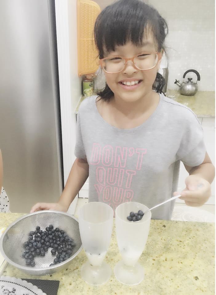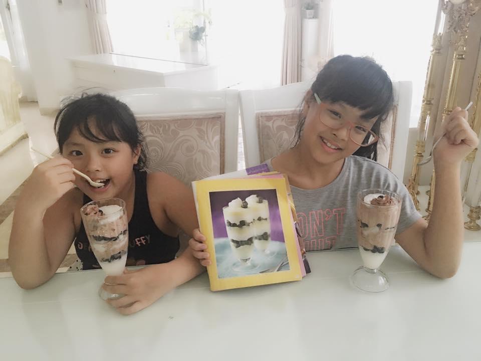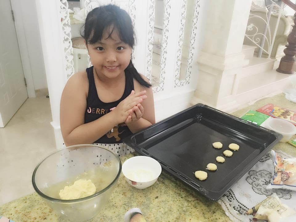 Thúy Hạnh: Lần đầu tiên hai nàng xin mẹ làm các món tráng miệng theo sách.
