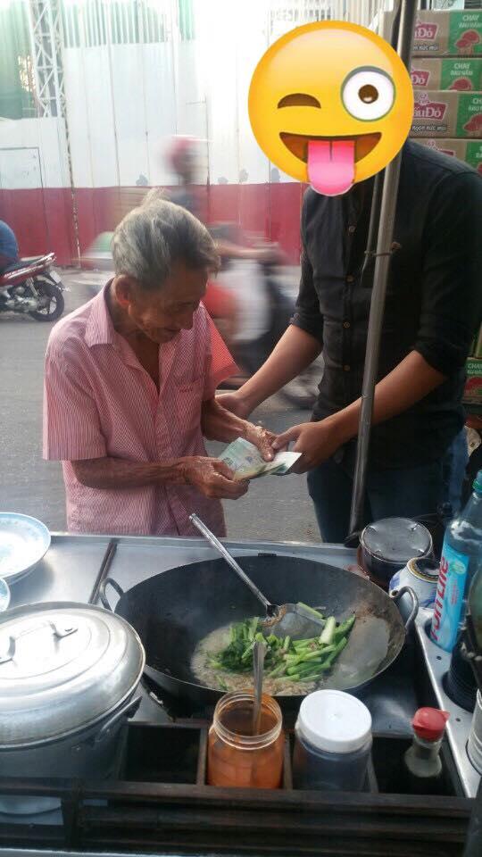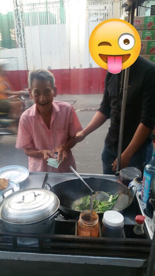 giúp đỡ cụ ông cùng dòng chia sẻ: "ông cười nhìn vui quá này" khiến nhiều người