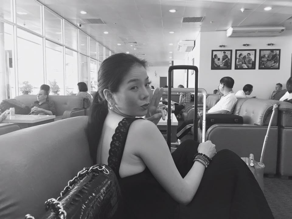 Lệ Quyên khoe: Nhân lúc delay, bạn Bo bảo để con chụp hình cho Ba Mẹ,