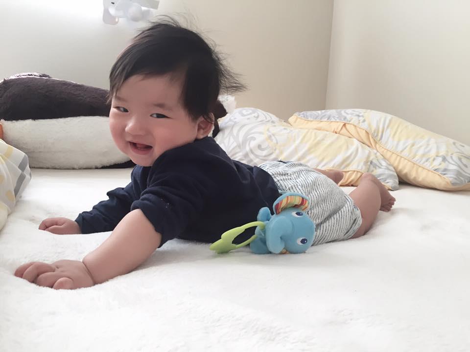 Ngọc Quyên: Em tên Jiraiya, em có 2 cái răng rồi nha. Và em đã bò lung tung được.