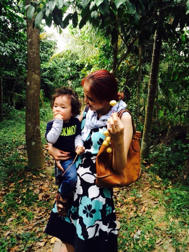 quanh con. Nào thì lẩu mắm, nào là cầu khỉ, vườn cây, hái trái...