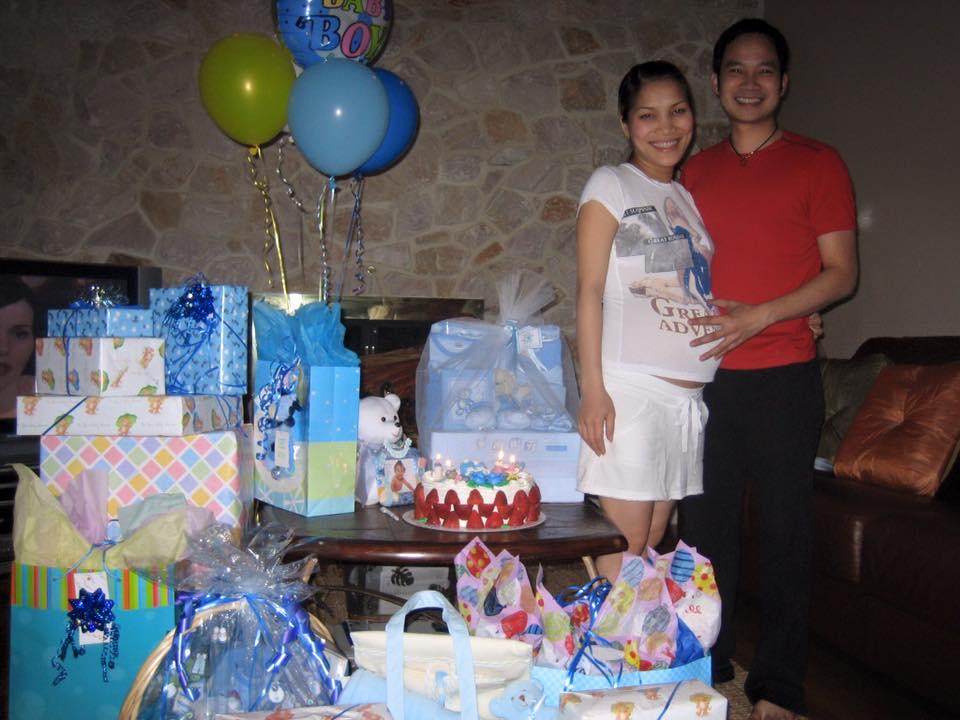 bụng mẹ: Lúc này Hưng đang trong bụng mẹ. Mọi người tổ chúc baby showers cho mę.