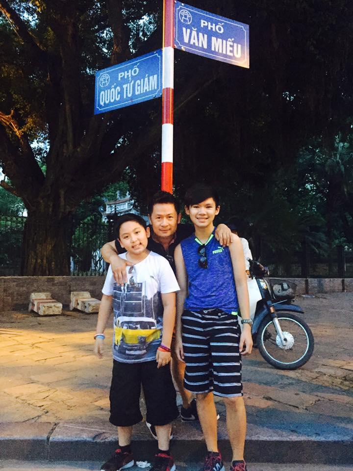 Bằng Kiều chia sẻ hình ảnh kỷ niệm của ba bố con khi về Hà Nội: Về "quê" của bố , 2 anh có vẻ thích.
