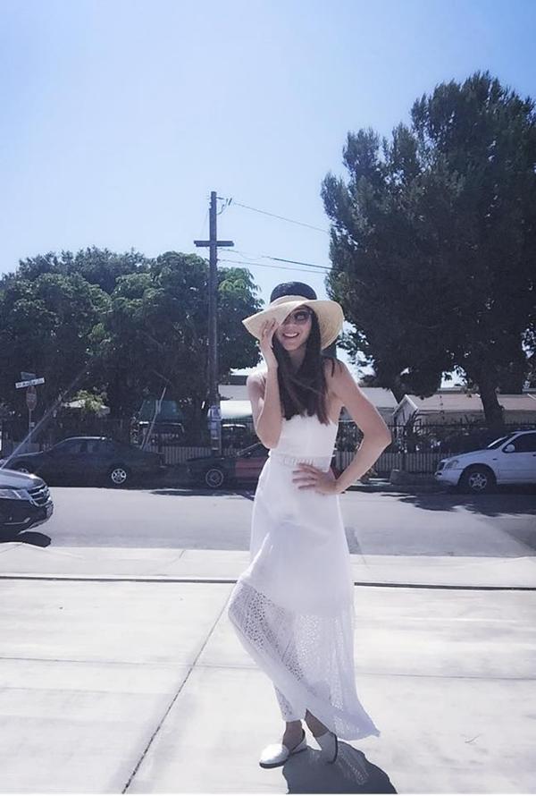Ngọc Quyên tự tin với vóc dáng của bản thân sau sinh: Ngày nắng mặc đầm trắng. Nhìn em vậy thôi chứ thật ra em đi shipping hàng cho khách và đi chợ ấy. Từ ngày em lấy lại dáng em chịu khó ăn mặc đẹp hơn khi ra đường. Bỗng thấy mình tự tin yêu đời hơn hẳn.