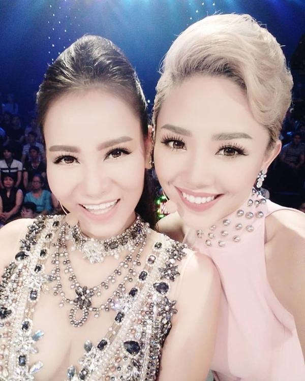 Tóc Tiên phấn khích selfie cùng Thu Minh tại hậu trường sự kiện.