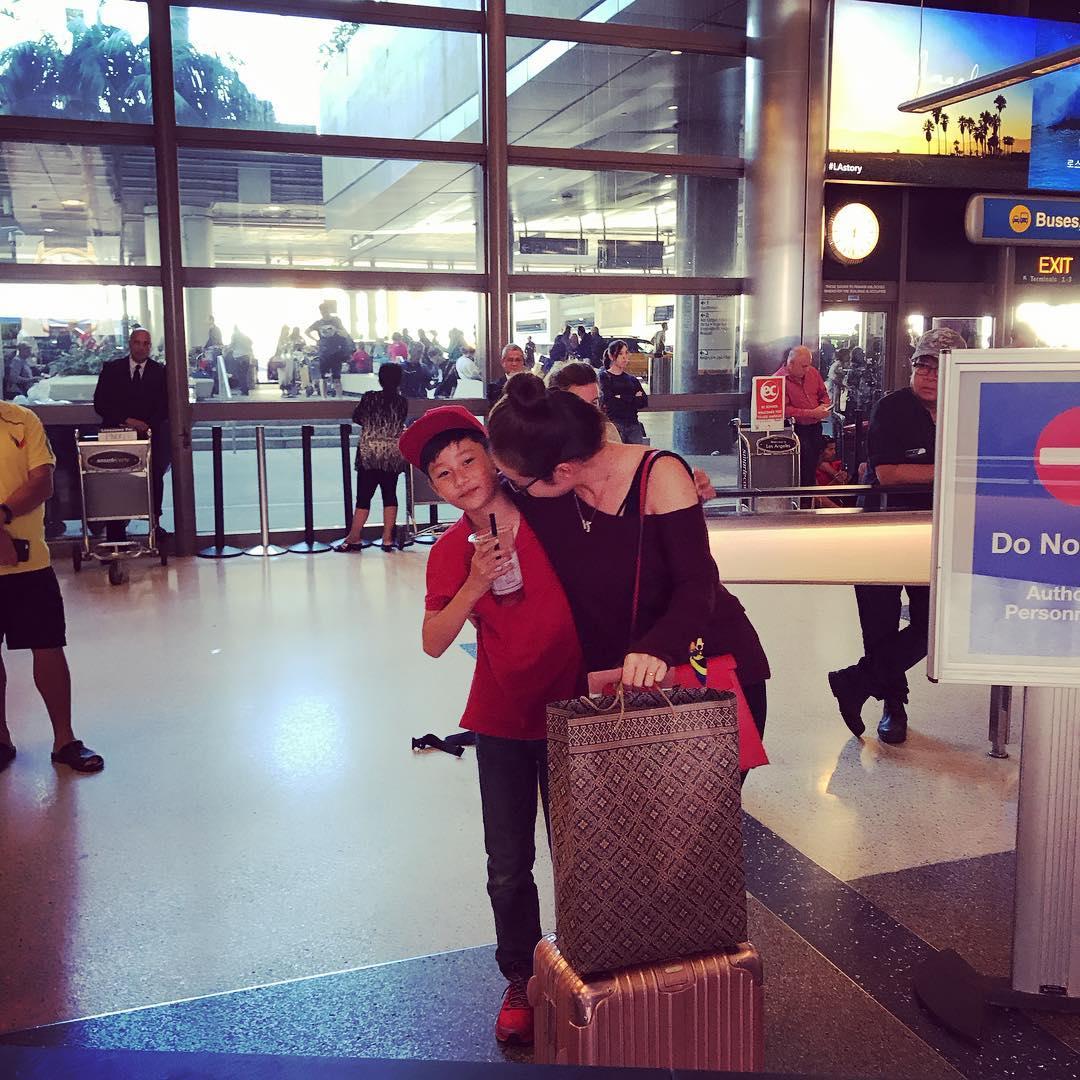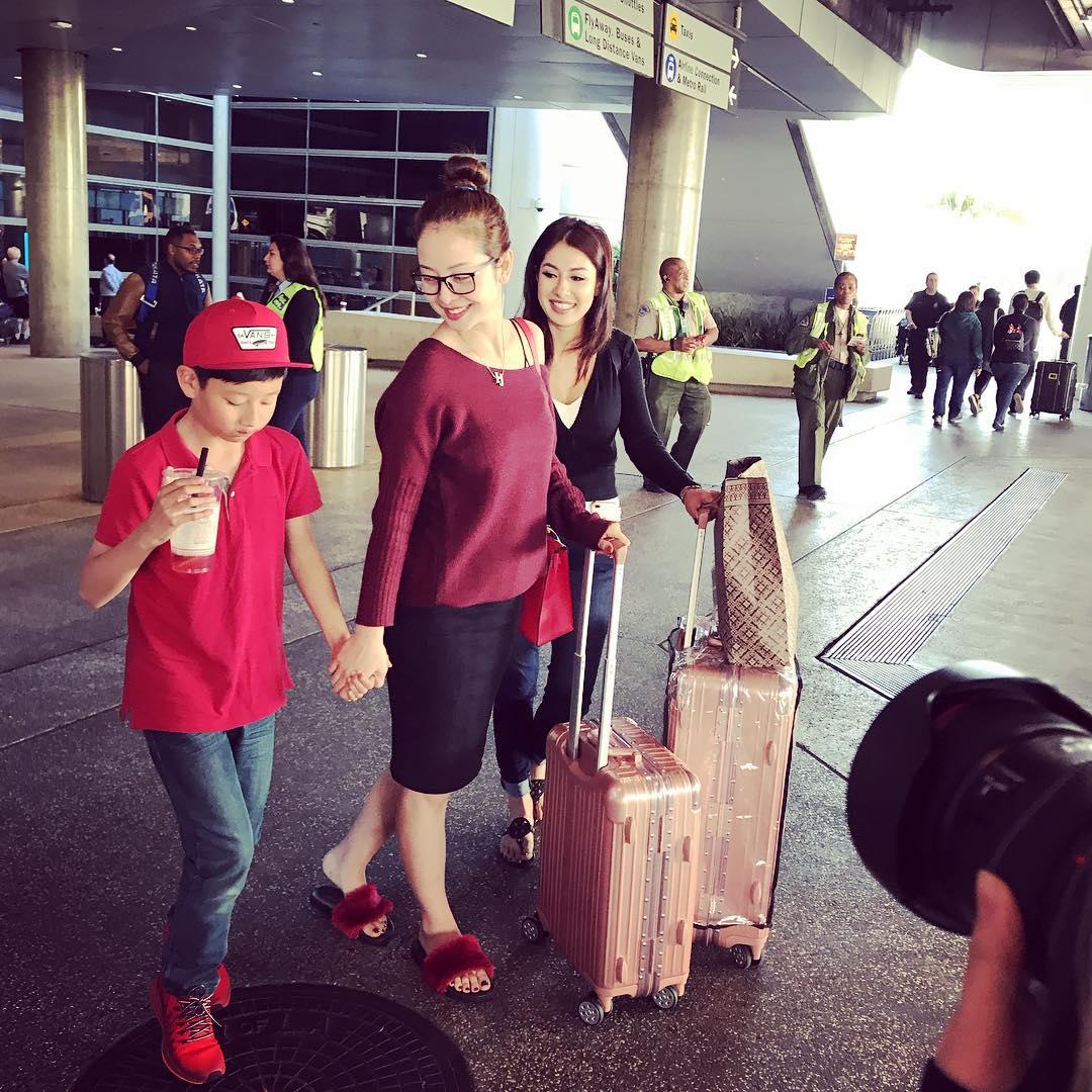 Hoa hậu Jennifer Phạm cùng con trai Bảo Nam và em gái ra sân bay tại Mỹ đón bạn