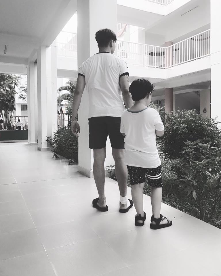 Mới đây, thông tin Tim và Trương Quỳnh Anh ly hôn nổ ra và gây xôn xao dư luận. Giữa tâm bão, nam ca sĩ đăng tải hình ảnh nắm tay con trai: "Em Shi thấy chân ba đau, em dẫn ba về này".