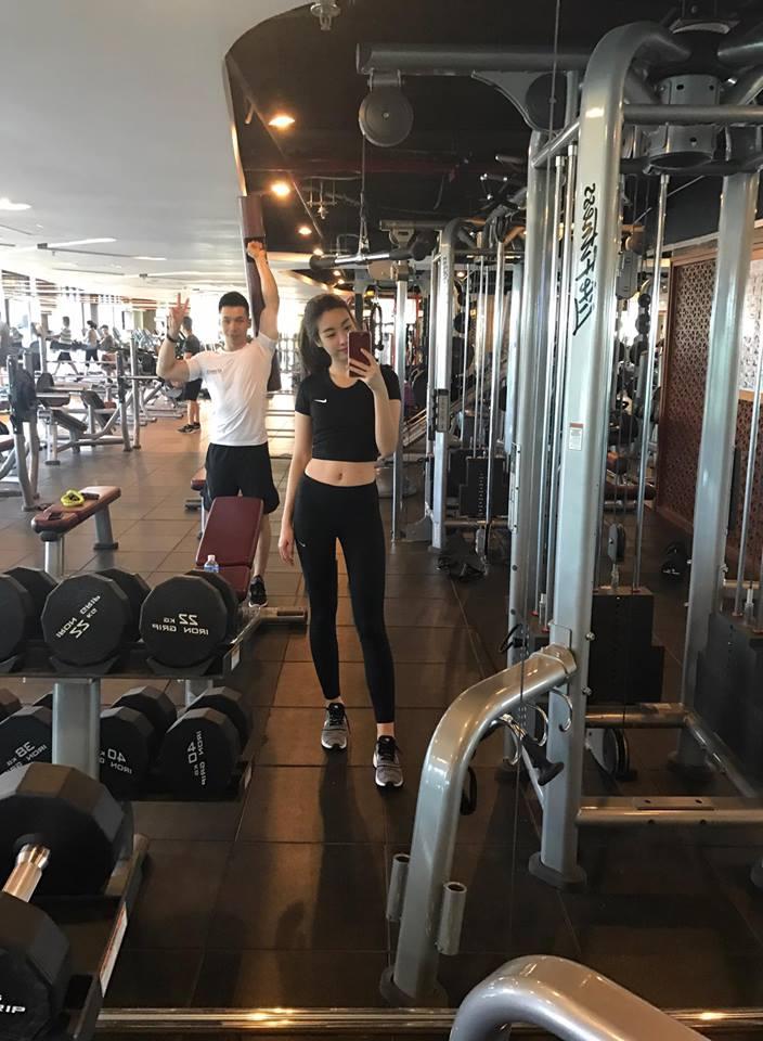 Hoa hậu Đỗ Mỹ Linh trở lại phòng tập thể hình sau một tuần bỏ bê, lười nhác.