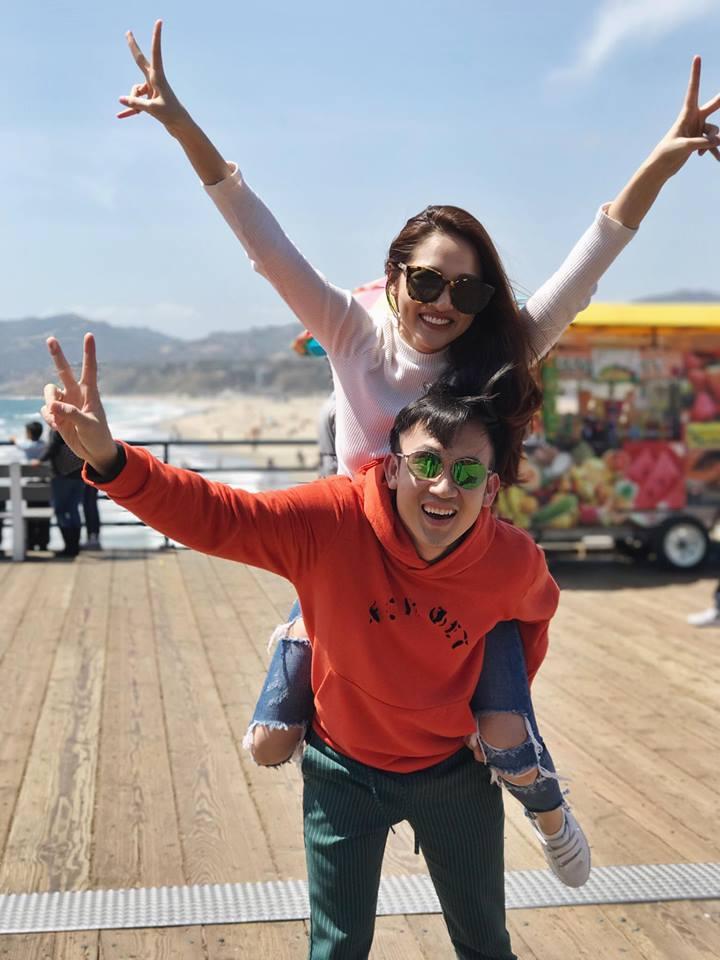 Dương Triệu Vũ và Bảo Anh tạo dáng xì teen trên đất Mỹ.