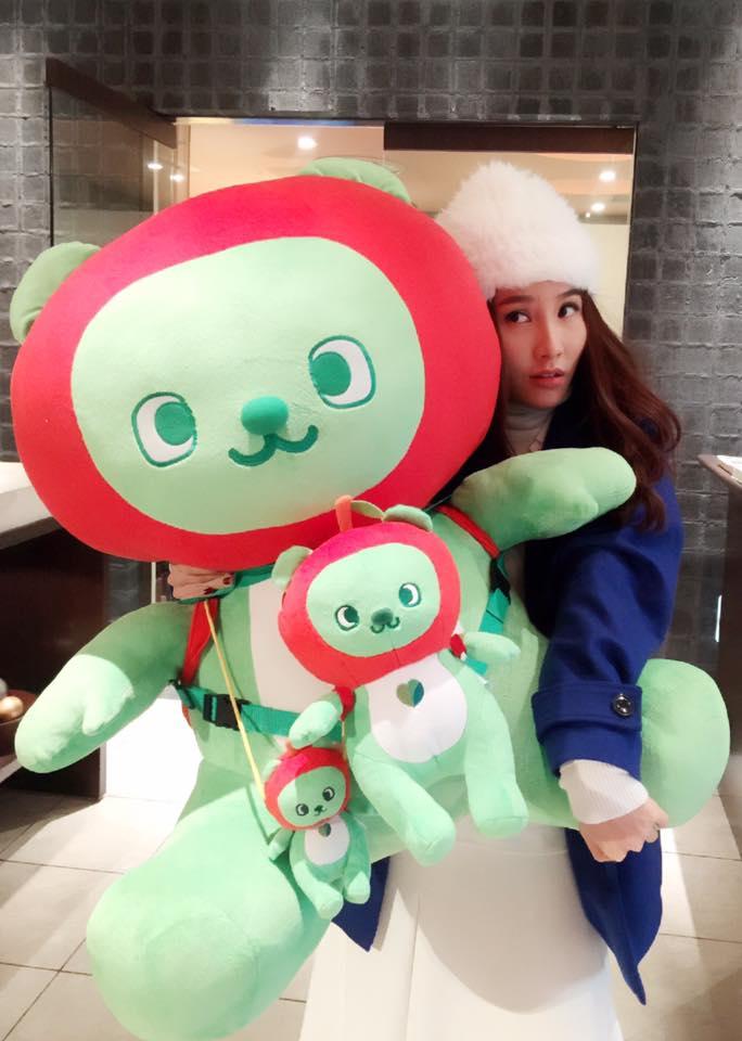 Diễm My: "Xin giới thiệu với cả nhà đây là "đàn em" của My tên là Arukuma (em gấu biết đi đầu đội nguyên trái táo). Chúc cả nhà ngày mới tốt lành, Hà Nội ơi My tới đây "