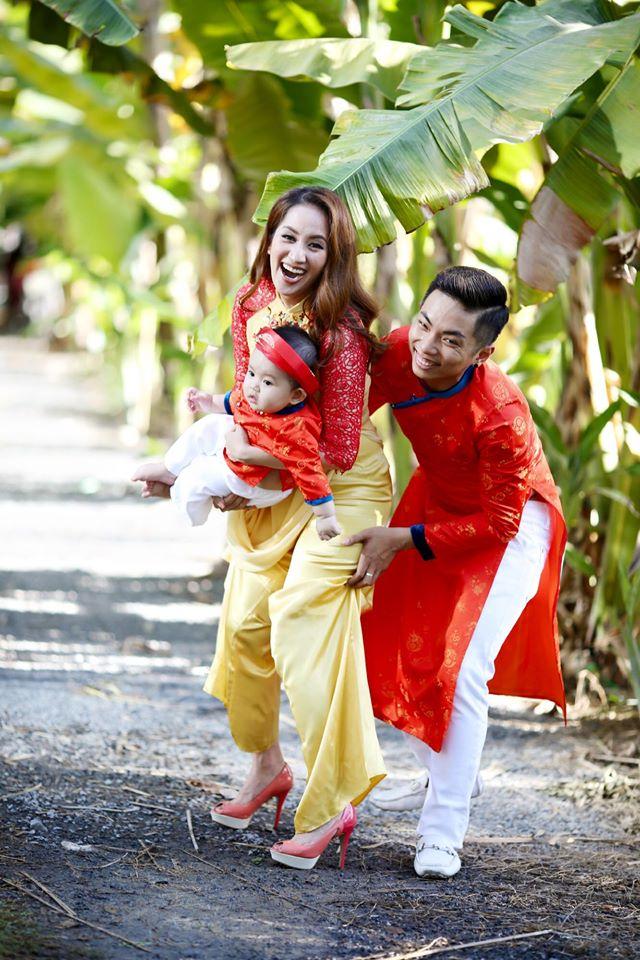 Khánh Thi: "Con trai yêu quí của Mẹ ! Nhìn con lớn từng ngày Ba Mẹ mừng lắm . Gần Tết rồi nên ai cũng vội vã tấp nập, bao lo toan nhọc nhằn đều hiện lên trên mặt. Ba Mẹ cũng không ngoại lệ. Mình hơn người ta điểm này nhưng cũng chẳng bằng ai ở điểm khác.Có con rồi thì lại càng phải hoàn chỉnh hơn và cố gắng hơn cho gia đình mình viên mãn.Vì thế sẽ chẳng ai ngần ngại mà không dấn thân vào cuộc đời nhiều cung bậc để sống và sống tốt hơn .Ba Mẹ muốn con có nhiều ước mơ để sau này con sẽ dám chạm vào nó, dám thực hiện và thách thức.Con sẽ trưởng thành . Nhưng Ba Mẹ lại mong những gì sẽ diễn ra trong tương lai sẽ vẫn luôn được con nhìn nó đẹp như bong bóng bay này .Và sẽ luôn hồn nhiên như vậy con nhé . Ba Mẹ yêu con ."