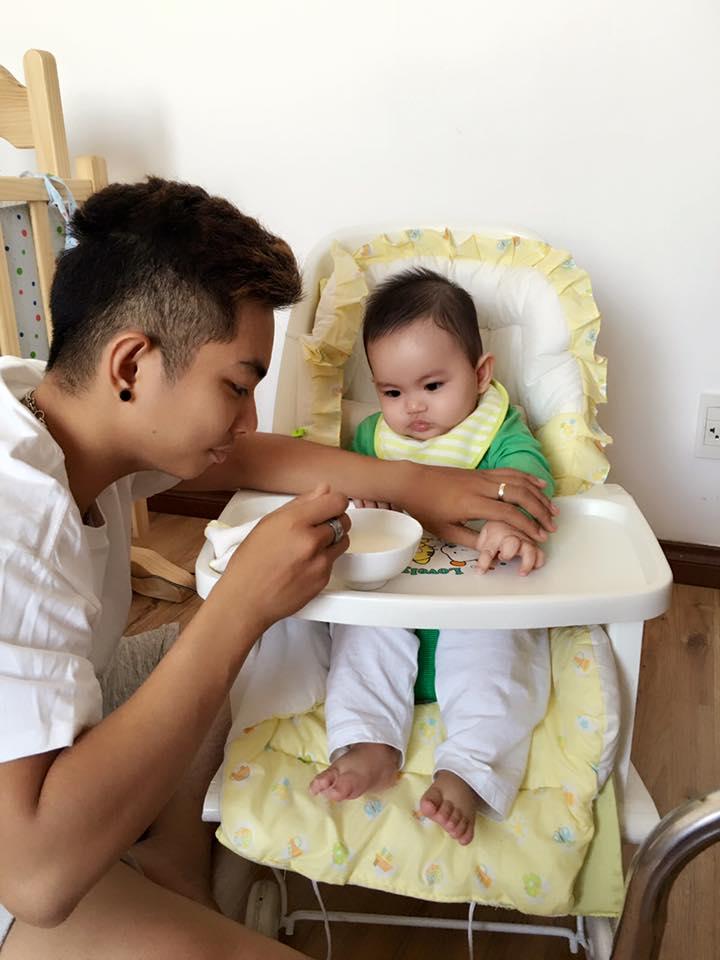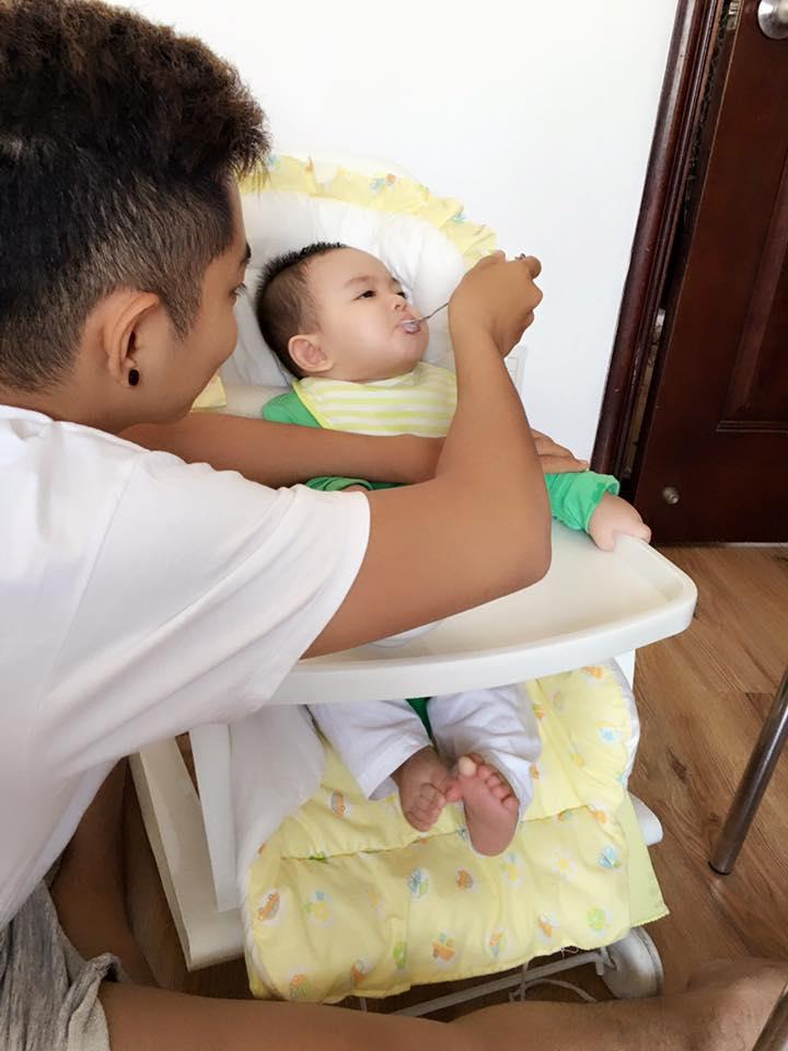 Ba Kubi là người dễ ăn dễ uống nên Ba sẽ tập ăn dặm cho kubi nha .Mẹ Thi học tập.