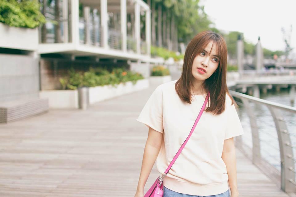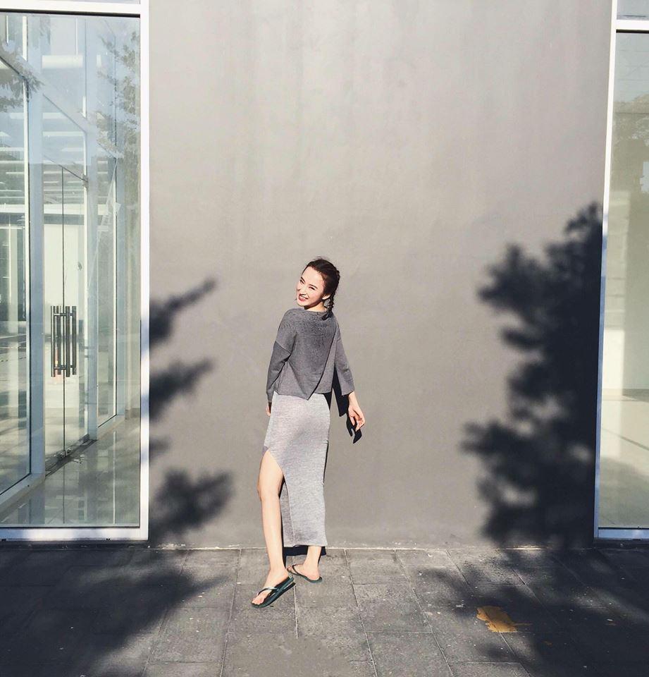 Diễm Hương hân hoan: Sáng nay đi làm gặp cô ca sỹ dễ thương.