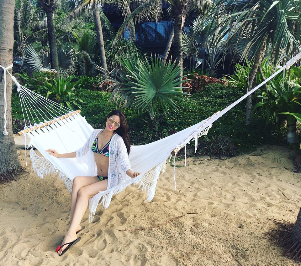 Phạm Hương khoe dáng ngọc trên bãi biển khi đi nghỉ dưỡng.