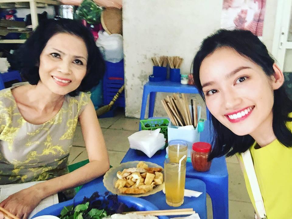 2 mẹ con ăn bún đậu vã hết cả mồ hôi.