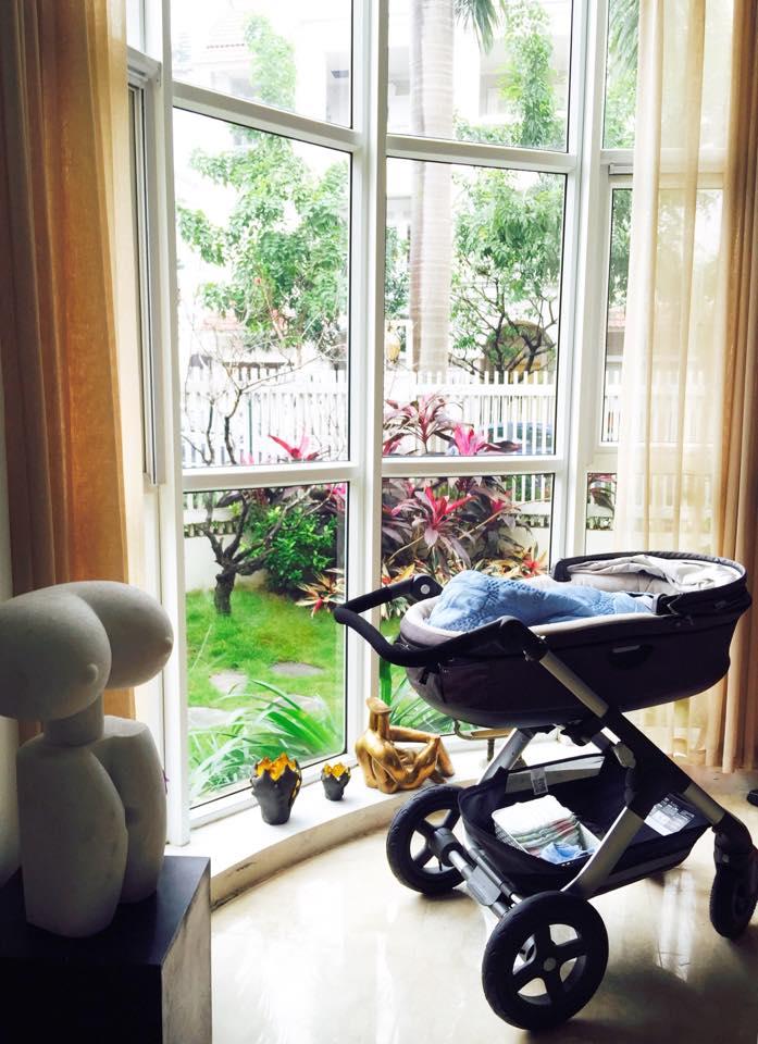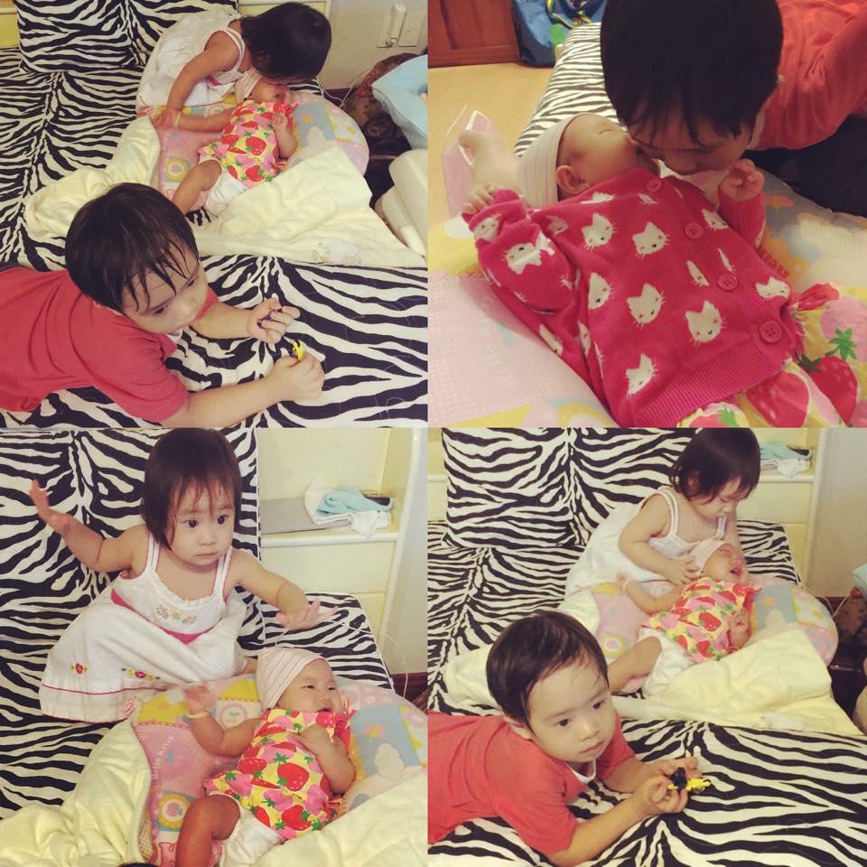 Rio và Cherry vừa xem phim vừa trông em. Cô 3 có vẻ đảm đang hơn hẳn"