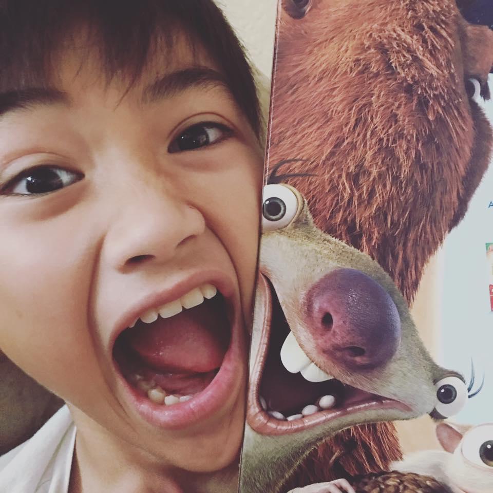 vẫn rất tự tin chụp ảnh selfie vì đã có bạn đồng hành super dễ thương.