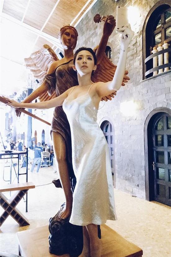 Hồ Ngọc Hà trong hậu trường buổi chụp hình.