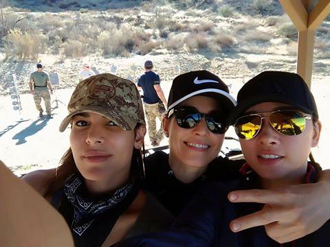 Ngô Thanh Vân: Trước khi thầy dạy bắn súng. Tranh thủ selfie với hai nàng một tí.