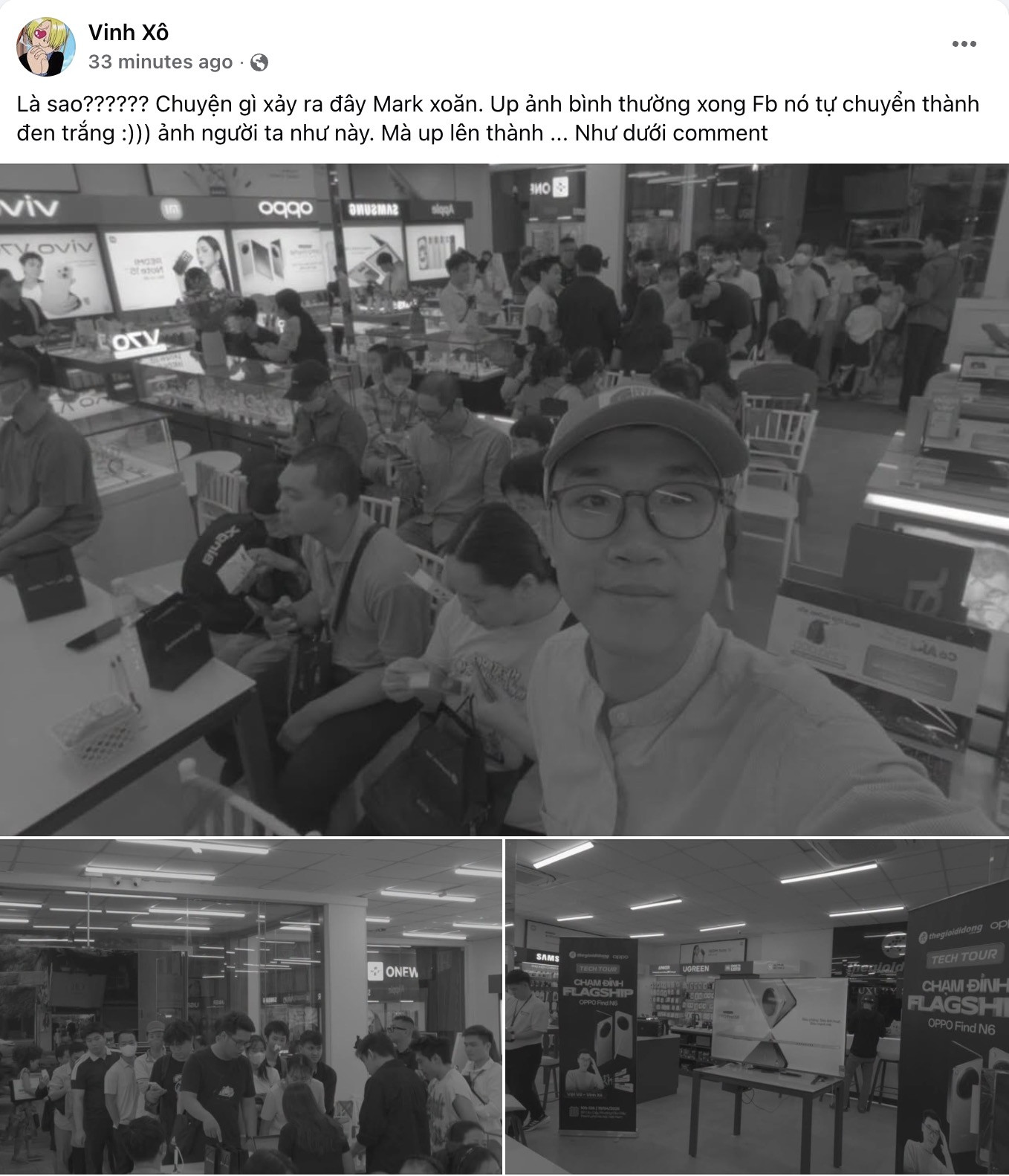 Trên một bài đăng, chủ tài khoản bày tỏ: "Ủa sao úp hình lên nó lại về đen trắng nhỉ", khi ảnh check-in và ảnh kỷ vật cá nhân đều chuyển thành grayscale hoàn toàn. Ở một trường hợp khác, bốn ảnh chụp tại sự kiện công nghệ do người dùng đăng tải cũng gặp tình trạng tương tự, trong khi ảnh gốc trong máy vẫn là ảnh màu bình thường.