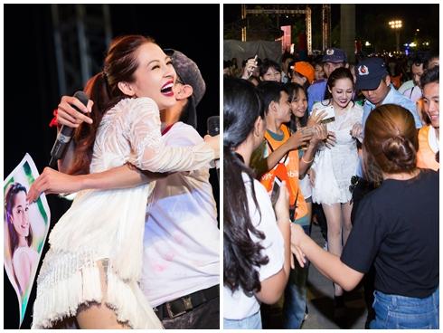 Noo Phước Thịnh bị fan vây kín Dù bị đám đông xô đẩy nhưng Noo Phước Thịnh vẫn giữ thái độ thân thiện.