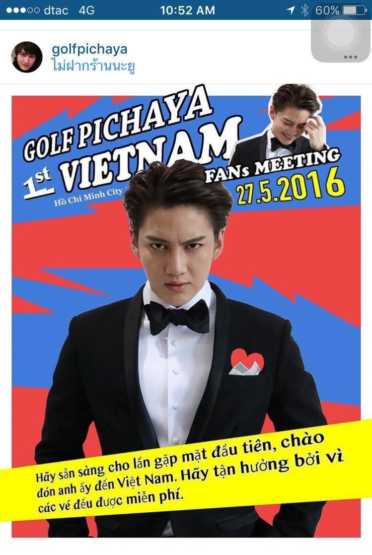 Golf Pichaya sẽ có mặt tại Việt Nam vào ngày 26/5 để tổ chức buổi họp báo giới thiệu chương trình, fanmeeting sẽ diễn ra vào ngày 27/5.