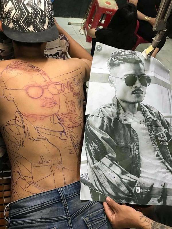 Mặc dù có những ý kiến trái chiều nhưng hình xăm Hoa Vinh kín lưng của nam thanh niên nói trên vẫn đang được dân mạng chia sẻ chóng mặt.
