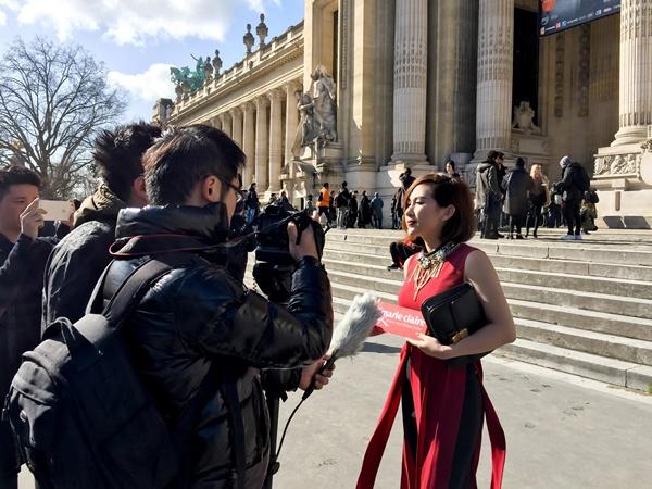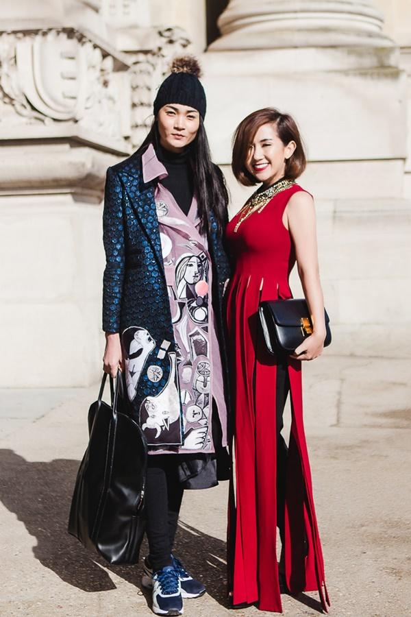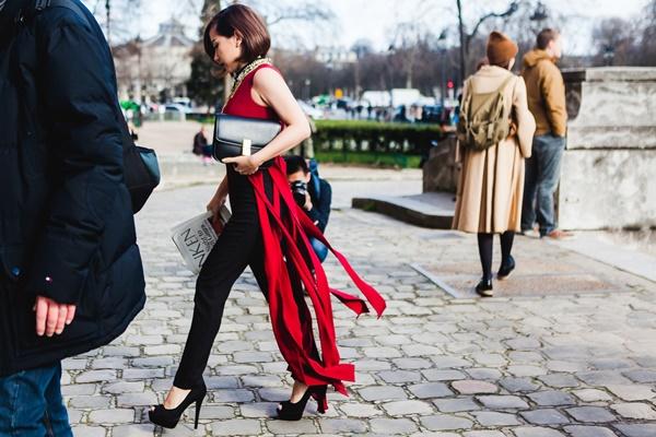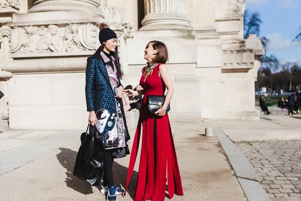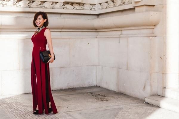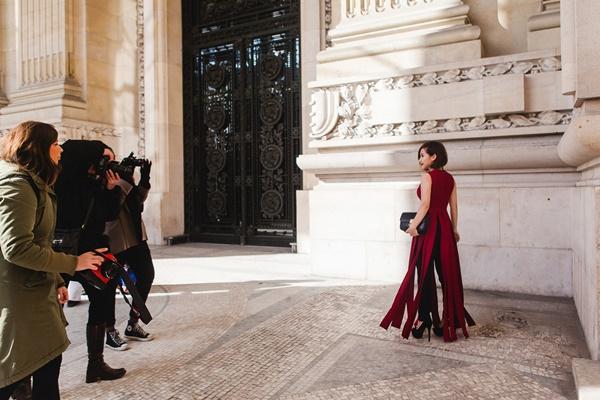 Với show diễn của NTK Martin Margela tại Grand Palais, cô nàng đã chọn màu đỏ đô – màu sắc thể hiện đúng nhất trạng thái của mình, háo hức và hồi hộp. Khéo léo mix chiếc áo dạng váy tua rua của NTK Lê Thanh Hoà, quần skinny với túi xách Celine, Trâm Nguyễn tự tin sải bước bên cạnh những fashionista thế giới, dù vóc dáng khá nhỏ bé. Nghiễm nhiên, người đẹp đã lọt vào ống kính của nhiều phóng viên, kênh truyền hình tại Pháp. Đặc biệt, tạp chí thời trang Marie Claire ,Trung Quốc, đã phỏng vấn Trâm Nguyễn về những trải nghiệm của cô vào ngày đầu tham gia “Paris Fashion Week”