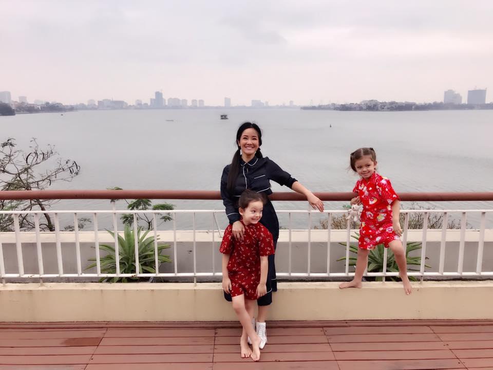 Hồng Nhung cùng các con tận hưởng không khí ở Hồ Tây - Hà Nội: "Về lại hồ Tây, thuở Bống là người...".