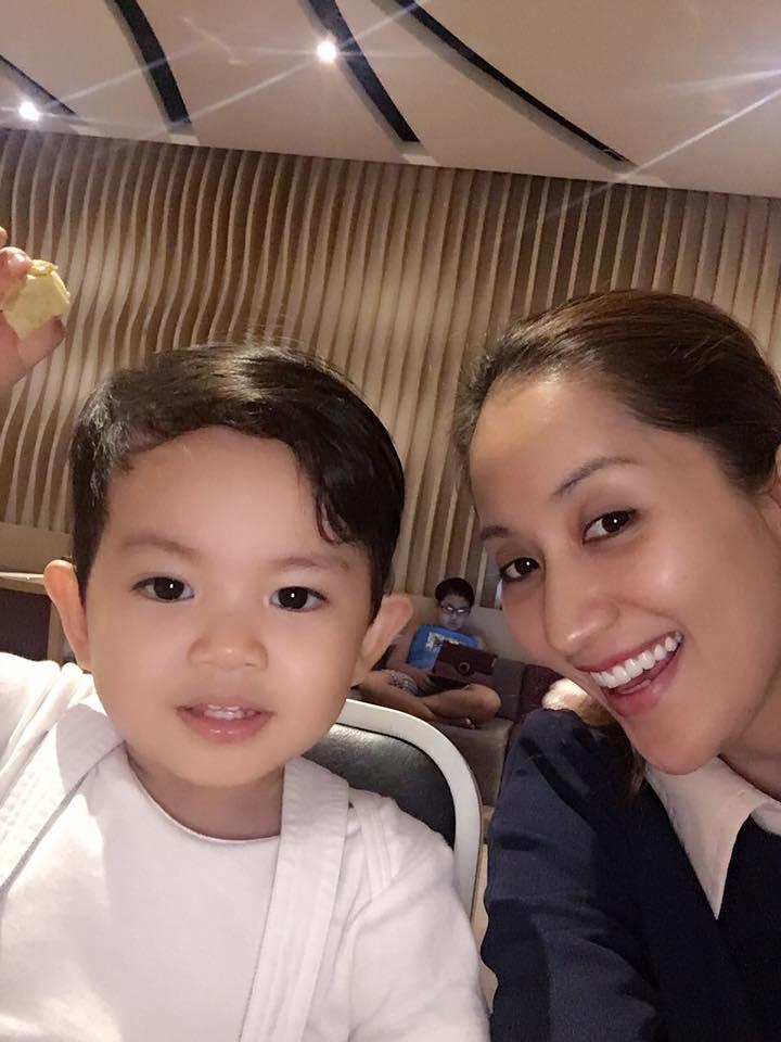 Khoảnh khắc tinh nghịch của Kỳ Hân bên con trai