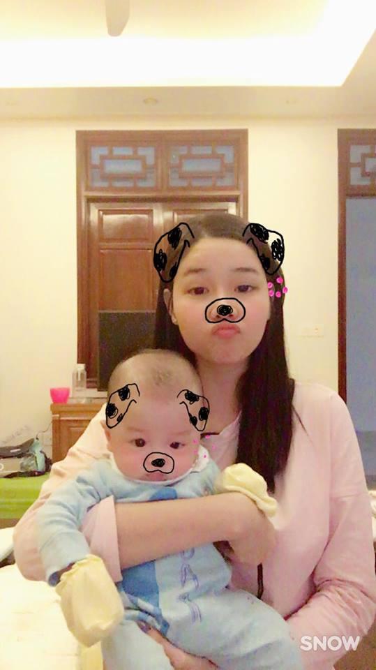 Ngô Trà My hạnh phúc khoe: "Mẹ đưa em đi tiêm, bây giờ em lớn rồi tiêm chỉ khóc ré lên tí thôi lại cười ngay, Khỉ con ngoan lắm. Mình chăm đăng ảnh để mẹ chồng mình còn xem. Mẹ rất thích xem ảnh con dâu và cháu nội".