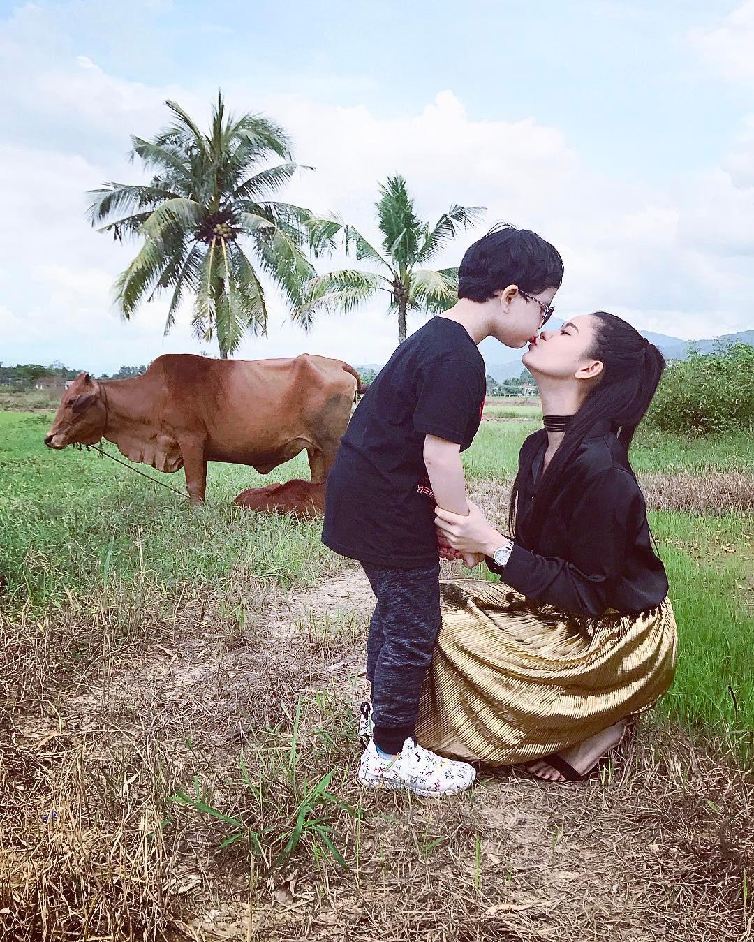 Trương Quỳnh Anh tận hưởng không khí yên bình làng quê cùng con trai