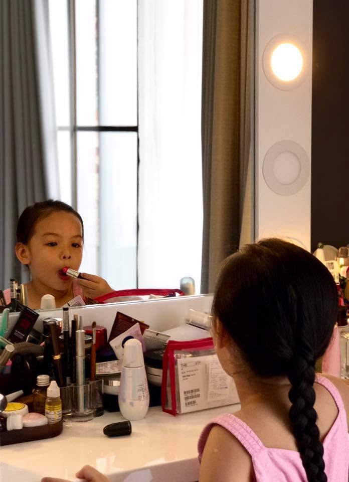 Con gái Phạm Quỳnh Anh điệu đà tự tô son khiến fans của mẹ bật cười thích thú