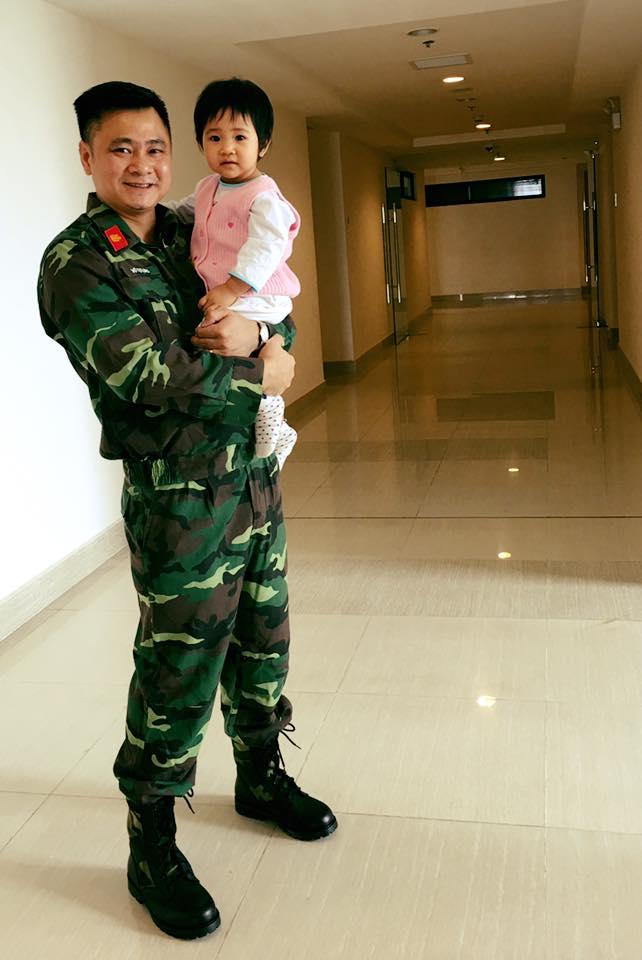 Tự Long vui vẻ hào hứng bên con gái khi diện trang phục áo lính: Khi bố em là lính.