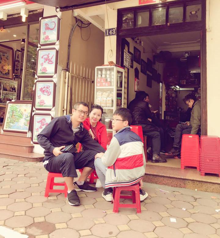 Bố mẹ và em trai Huyền My thư giãn ngồi caffe vỉa hè