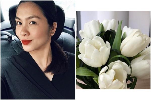 Trên trang cá nhân, "ngọc nữ" Tăng Thanh Hà khoe đóa hoa tulip trắng do ông xã Louis Nguyễn tặng.