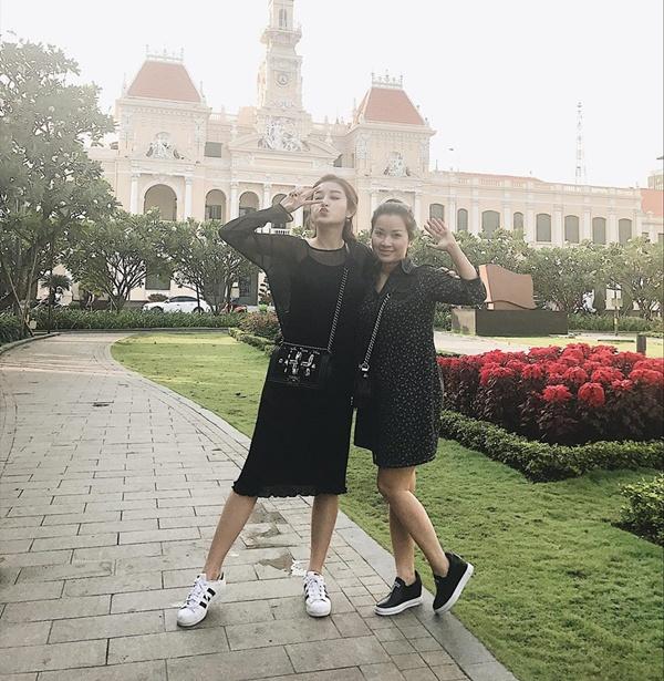 Huyền My tạo dáng xì tin bên mẹ, không quên chúc chị em phụ nữ nhận được nhiều hoa và quà 8/3.