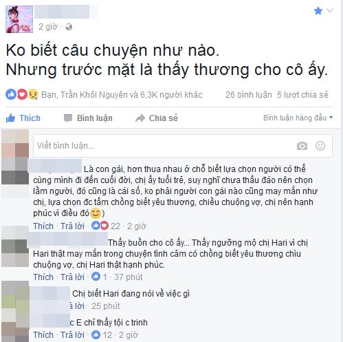 Hari Won đã có dòng chia sẻ lấp lửng cảm thông của mình với đồng nghiệp.