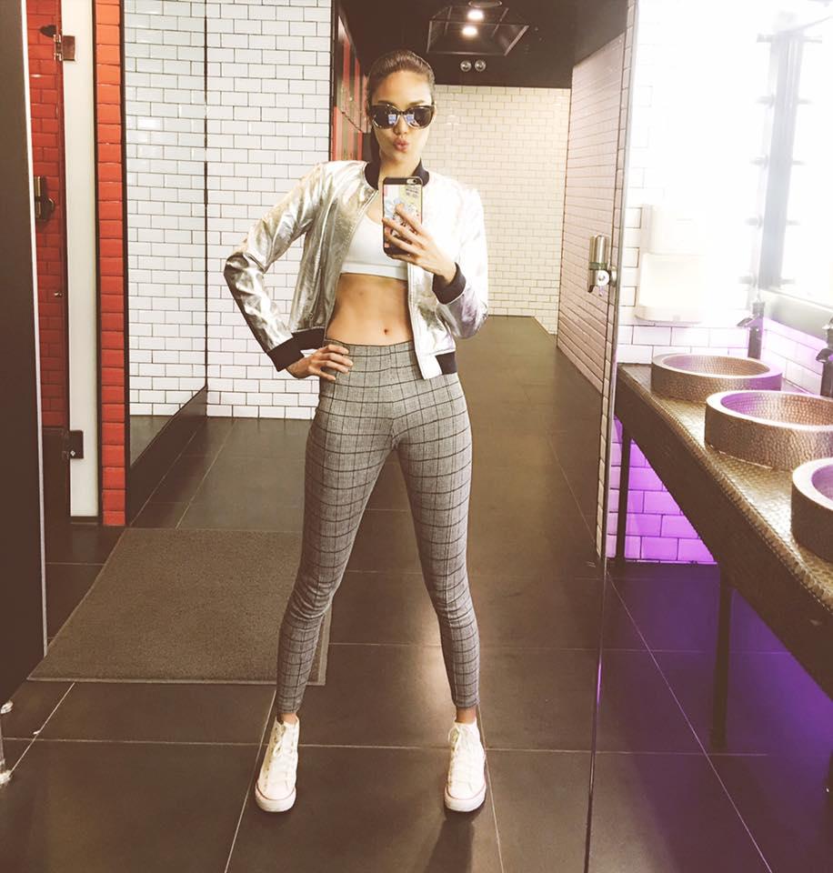 Lan Khuê selfie khoe bụng phẳng với crop top.