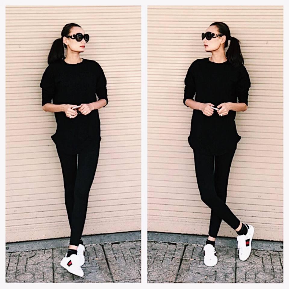 Lê Thúy đầy cá tính với tông đen xuống phố Sài Gòn