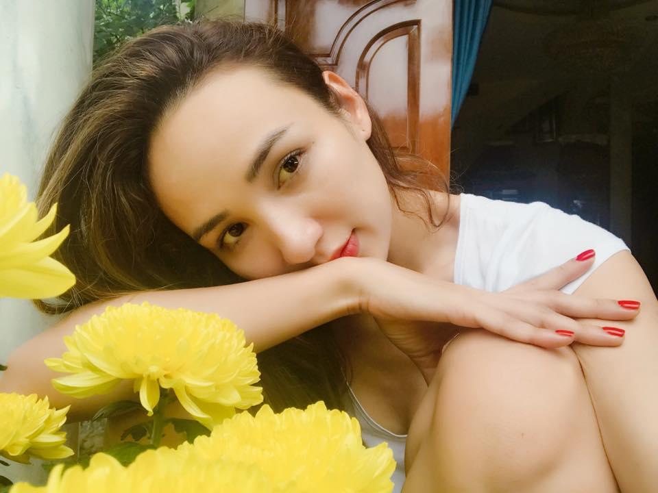 Ngọc Diễm hóm hỉnh chia sẻ tâm trạng: Cô gái bên hoa cúc. Đợi người làm phúc. Đến rước đi ăn.